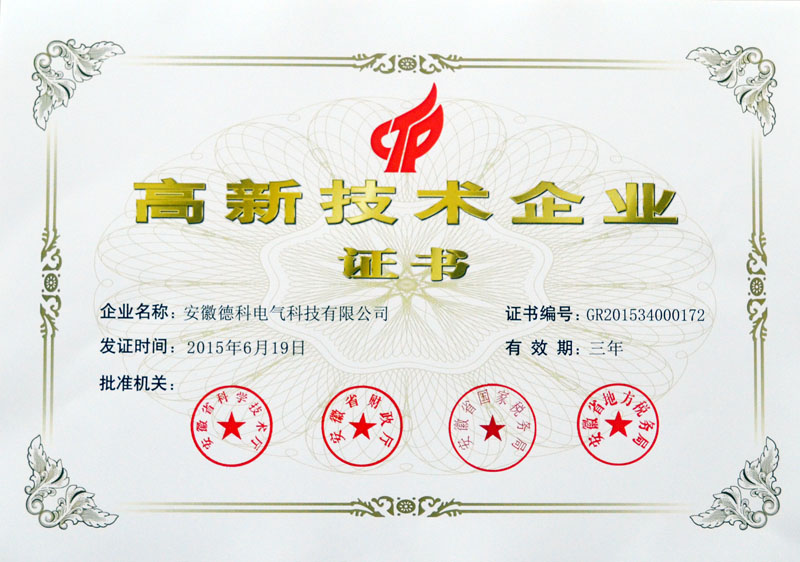 2015年11月,根據(jù)《高新技術(shù)企業(yè)認定管理辦法》和《高新技術(shù)企業(yè)認定管理工作指引》的相關(guān)規(guī)定,我公司被認定為國家級高新技術(shù)企業(yè),并于近日收到了由安徽省科學技術(shù)廳、安徽省財政廳、安徽省國家稅務(wù)局、安徽省地方稅務(wù)局聯(lián)合頒發(fā)的國家高新技術(shù)企業(yè)認定證書,證書編號為GR201534000172。
