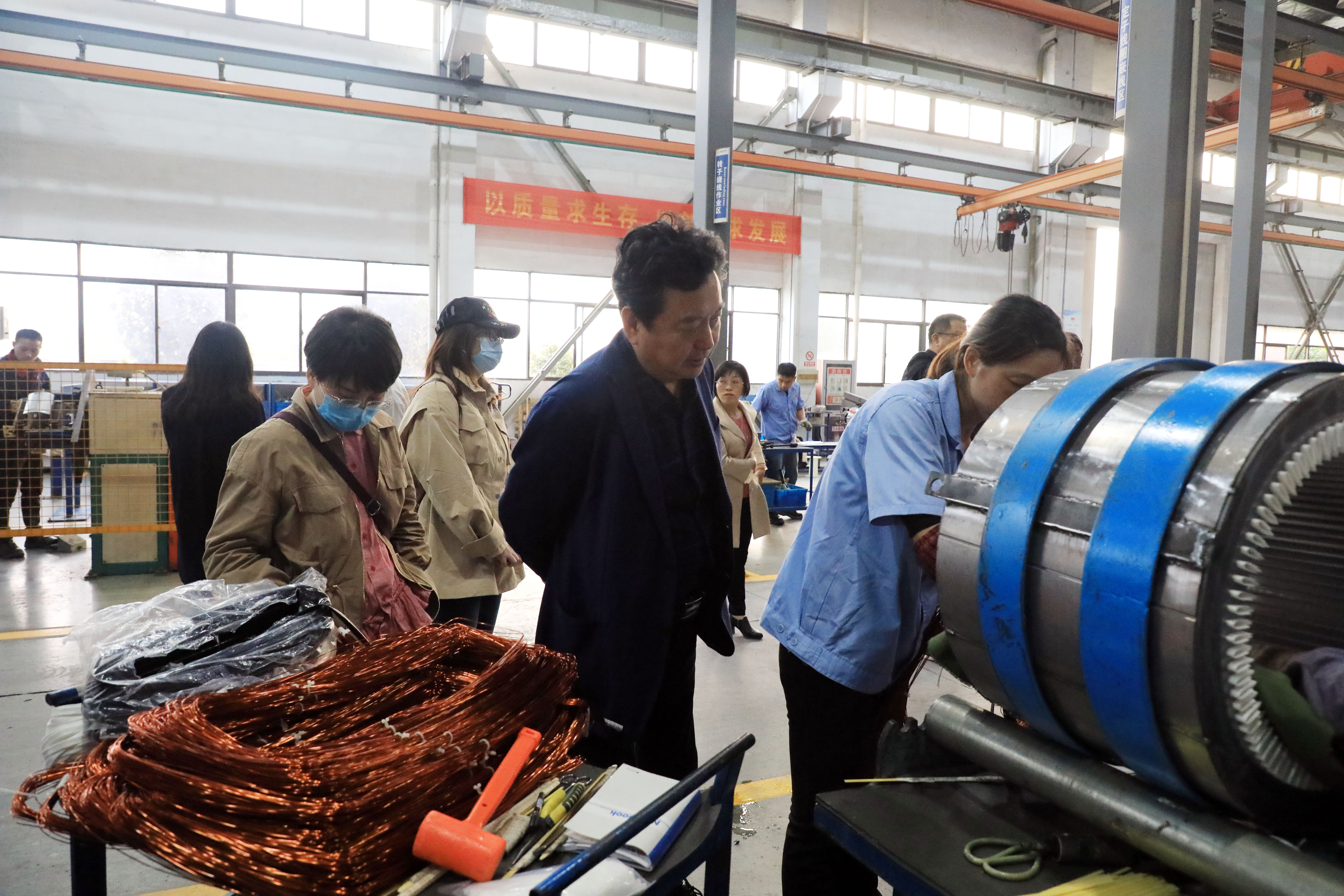 調研組一行參觀了生產現場,副總經理石斌向調研組領導介紹了公司陸用、船用發電機等主要產品,對公司產品研發、產線建設及生產經營情況進行了匯報。調研組對公司運營、市場占有率等情況進行詳細了解,對企業運行中存在的問題情況進行詢問并提出意見。